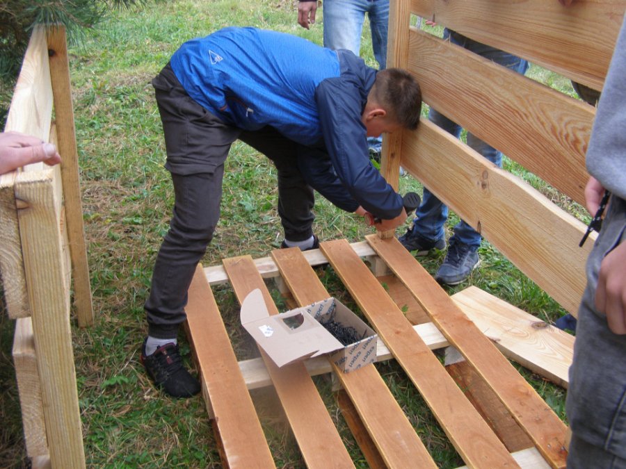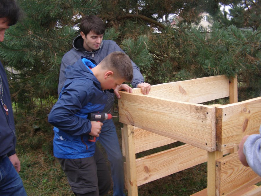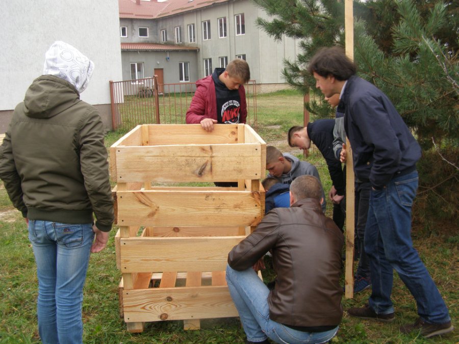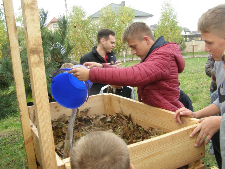 Учні самостійно скручували дошки, стелили плівку, копали черв'яків та засипали листя й траву в компостер. Вся робота зайняла біля 1 години.