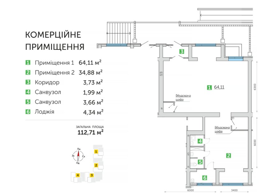 «Інвестор» розпочав продаж цих комерційних приміщень. Є варіанти кімнат площею 78 м2, 112 м2 та 123 м2, також є можливість поділу.