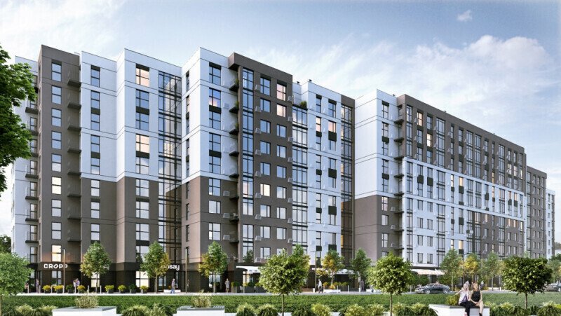 Нагадаємо, ця будівля вирізнятиметься на фоні перших будинків ЖК формою та плануванням: буде мати кілька під’їздів.