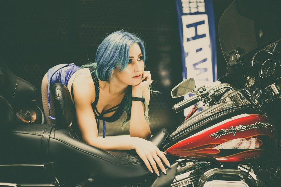 Її партнерами стали легендарні мотоцикли Harley Davidson.