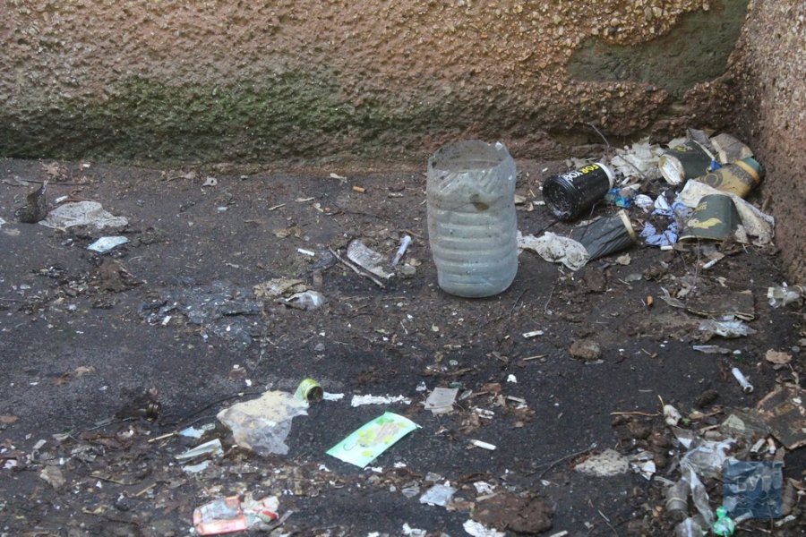 Ось як виглядає колишнє приміщення банку. Тут купи сміття та використаних шприців.