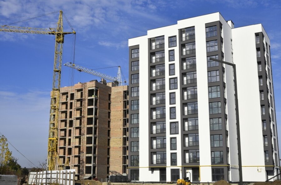 У п’ятому будинку завершили покрівельні роботи, домуровують вентиляційні канали, парапет та машинне відділення.
