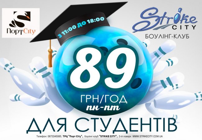 У боулінг-клубі «StrikeCity» – спеціальна пропозиція для студентів*