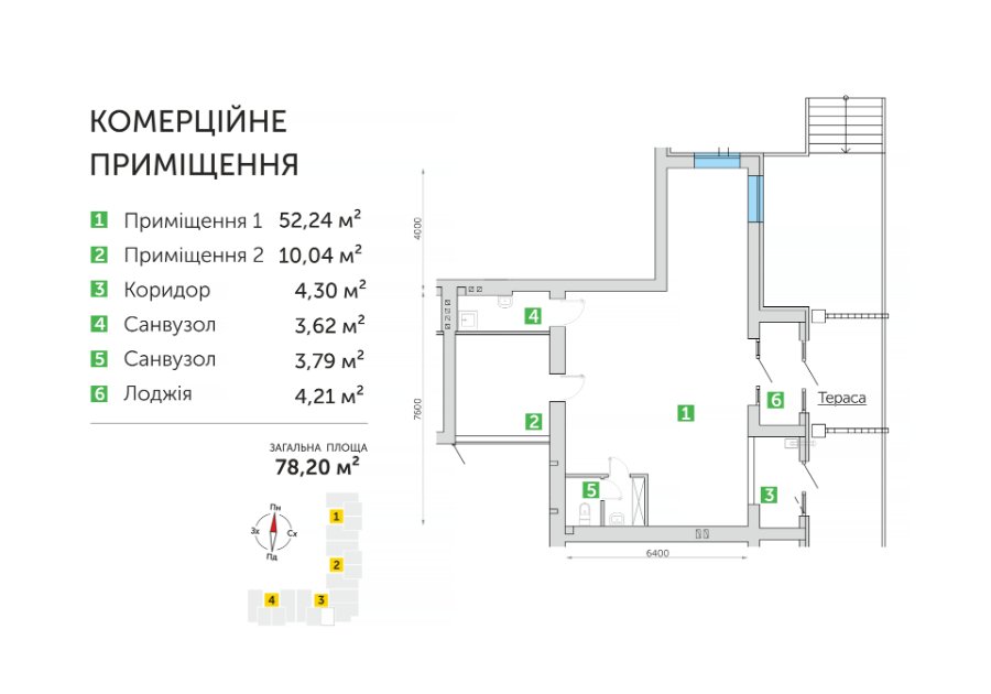 Є декілька варіантів комерційних приміщень: площею 78 м2, 112 м2 та 123 м2.