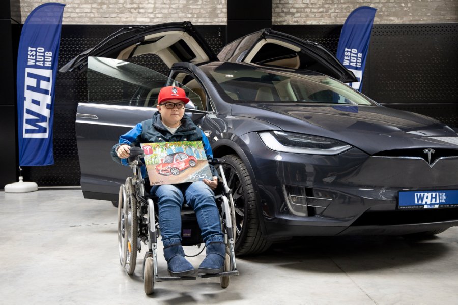 Компанія WEST AUTO HUB втілила мрію дванадцятирічного тяжкохворого лучанина Вадима Мучака і подарувала можливість побувати за кермом швидкісного електрокару Tesla Model X.