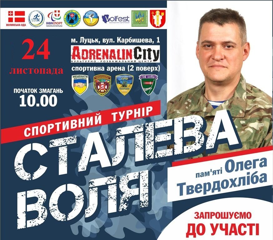 У Луцьку проведуть спортивний турнір "СТАЛЕВА ВОЛЯ" пам'яті Олега Твердохліба (бійця батальйону Айдар, попереднього Голови громадської спілки "Спілка воїнів АТО Волині").