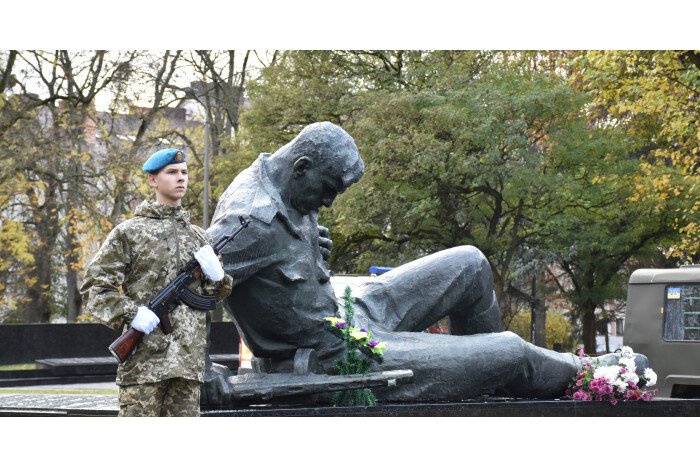Згодом присутні поклали квіти до пам'ятного знаку «Поранений солдат».