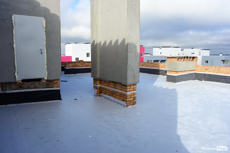 У будинку на Конякіна, 3В, фахівці закінчили працювати над покрівлею у першій та другій секціях, на семи поверхах першої секції вже провели штукатурні роботи та майже завершили електромонтажні роботи. У першій та другій секціях «карамельки» встановили вікна на восьми поверхах.