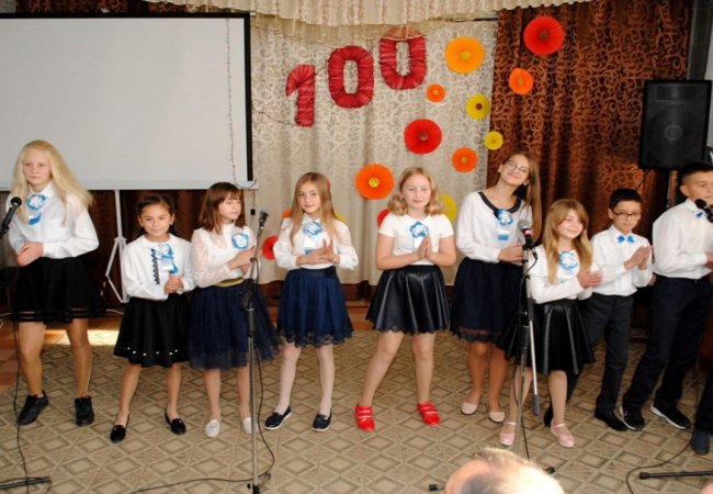 На імпровізованій сцені нинішні і колишні учні, вчителі і гості нашого свята переповідали історію сторічної ювілярки, свої життєві історії, висловлювали свою вдячність і побажання. З кожним кадром на екрані, з кожним виступом промовців ми поринали у спогади, у роки безтурботного шкільного життя, наша поважна ювілярка ніби як жива, раділа цим спогадам, вітанням, побажанням, раділа і ніби пишалась. Бо ж таки пишатись є чому.
