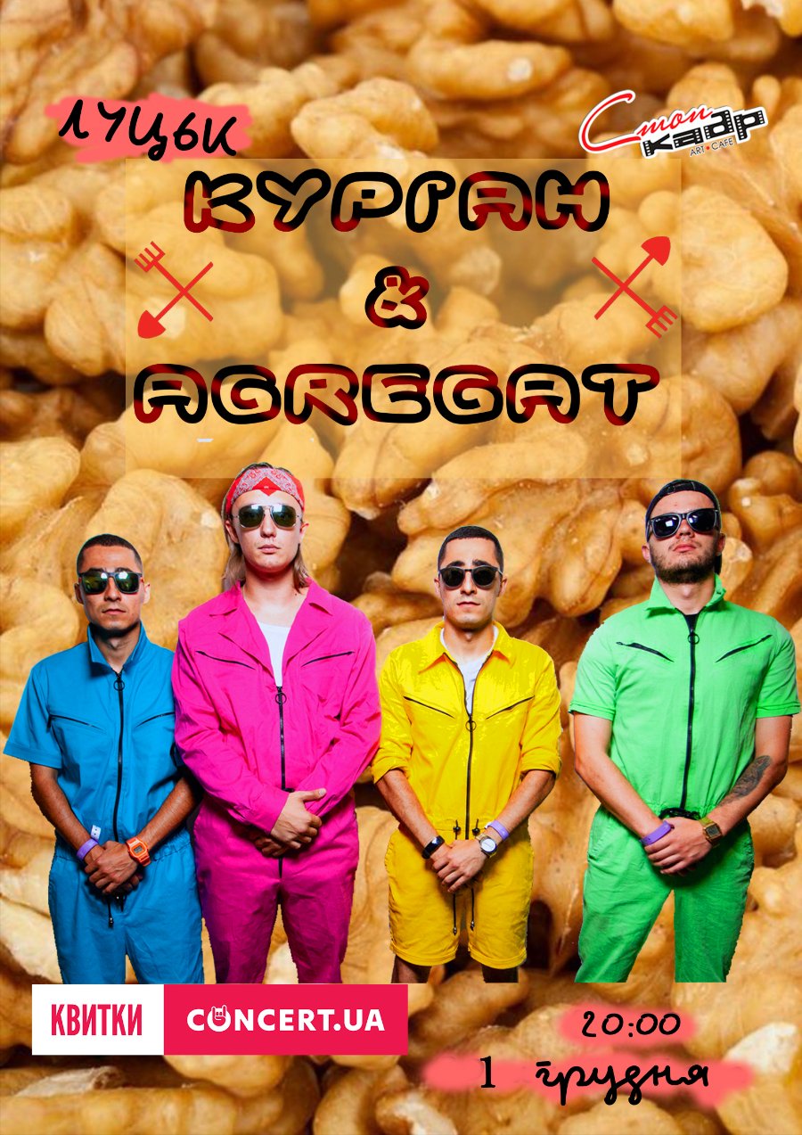 «Курган і Agregat» – хіп-хоп гурт із Харківщини, який приїздить до Луцька в рамках туру “Габелі”. Гурт не виступав у Луцьку вже два роки.