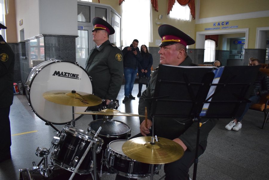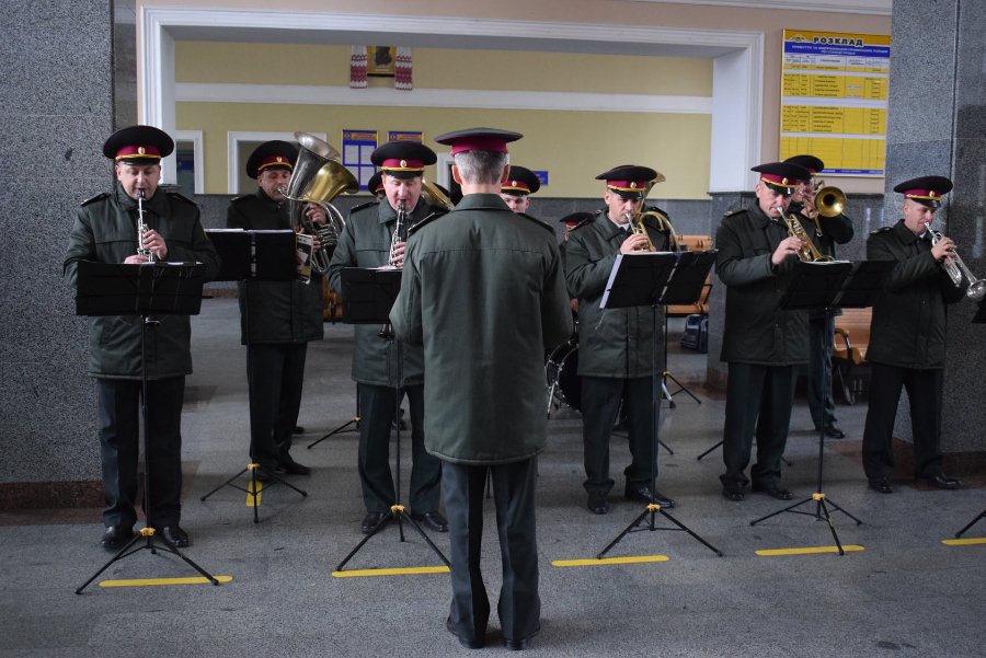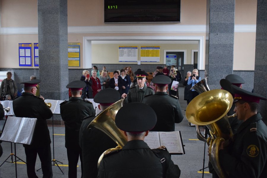 «Сьогодні ми із задоволенням прибули, щоб влаштувати оригінальне привітання для працівників Укрзалізниці. Наш військовий оркестр вже не вперше проводить такі «флешмоби», і як завжди вони неперевершені», - поділився з нами враженнями від виступу командир взводу лейтенант Віталій Пліско.