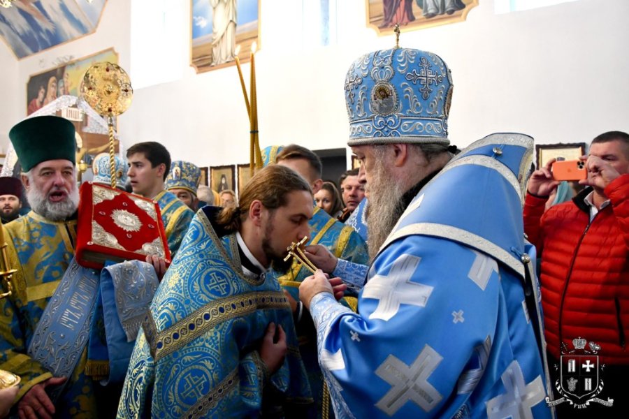На малому вході архієпископ Нафанаїл відзначив високою церковною нагородою настоятеля новоосвяченого храму ієрея Богдана – хрестом з прикрасами.