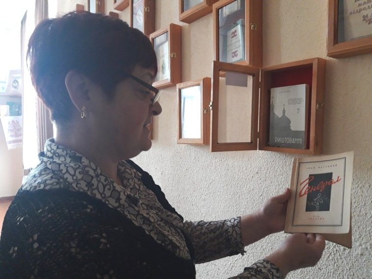 У музеї вона показує книгу з підписом українського письменника, нашого земляка Уласа Самчука. Також зберігається тут видання з віршем Івана Франка, якого не друкували за радянських часів. Є книга з твором Олени Пчілки, аналогів якій теж в Україні більше немає.