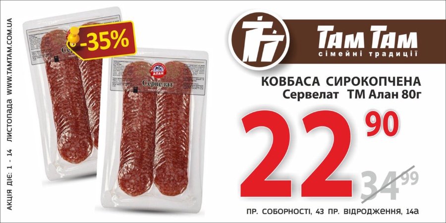 У магазинах «Там Там Сімейні традиції» та «Експрес Там Там» – знижки*