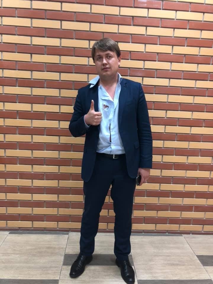 Андрій Герус на своїй сторінці опублікував фото, на якому видно, що у нього порвана сорочка.