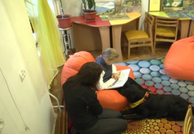 До обласної бібліотеки для юнацтва приходять найменші відвідувачі, аби лише посидіти за книжкою разом з собакою.