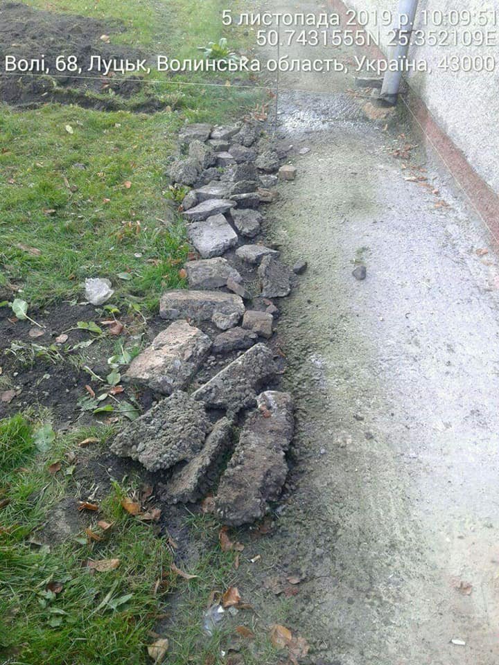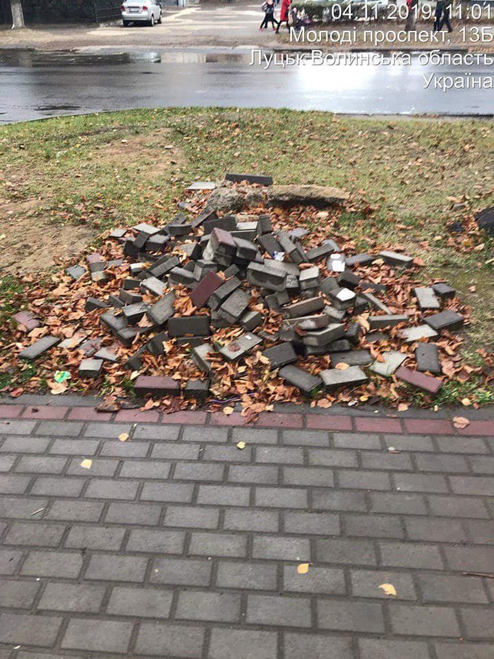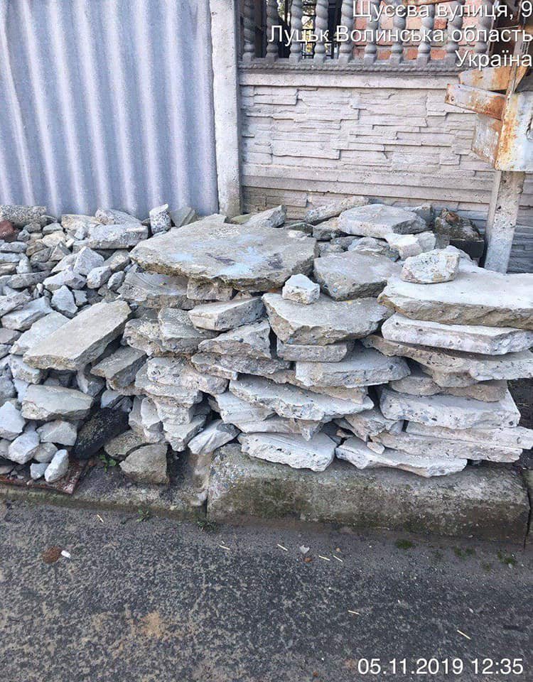 Такі дії є порушенням підпунктів 2.5.5.1.3 та 2.5.5.1.1 Правил благоустрою Луцька. У місті заборонено складувати будівельні матеріали, конструкції, обладнання за межами будівельних майданчиків у невизначених для цього місцях, а також засмічувати і забруднювати власні, прилеглі/заріплені території матеріалами, конструкціями, відходами тощо.