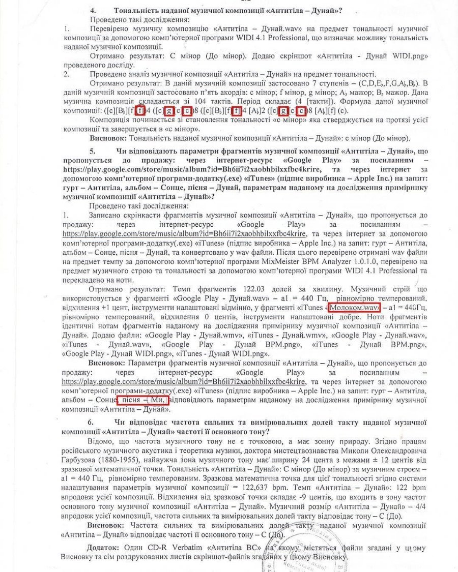 Наступним кроком Сергія Лапковського було доведення та офіційний висновки експерта. Ним став відомий луцький композитор, голова предметно-циклової комісії теорії музики Волинського державного училища культури і мистецтв імені І.Ф. Стравінського, заслужений діяч мистецтв України, голова волинського осередку спілки композиторів України – Віктор Тиможинський. Експерт за свою роботу отримав також по 7 тисяч за кожну композицію. Сам Віктор Тиможинський переконує, що незаконних дій не проводив, однак сторона позивача в особі Максима Сиволапа наполягає, що без не ліцензованого копіювання треку маніпуляцій із переформатуванням провести не можна було б.
