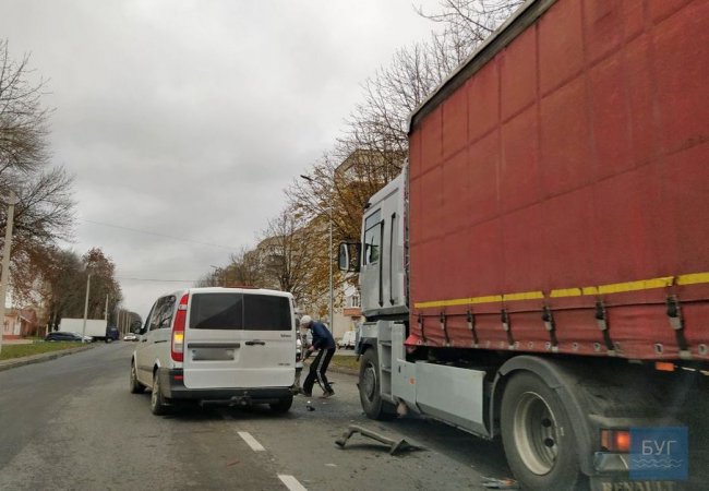 Водій фури не обрав безпечної відстані, не встиг вчасно загальмувати і наздогнав автівку. Від удару бус виїхав на зустрічну смугу. Обидва авто отримали механічні пошкодження.
