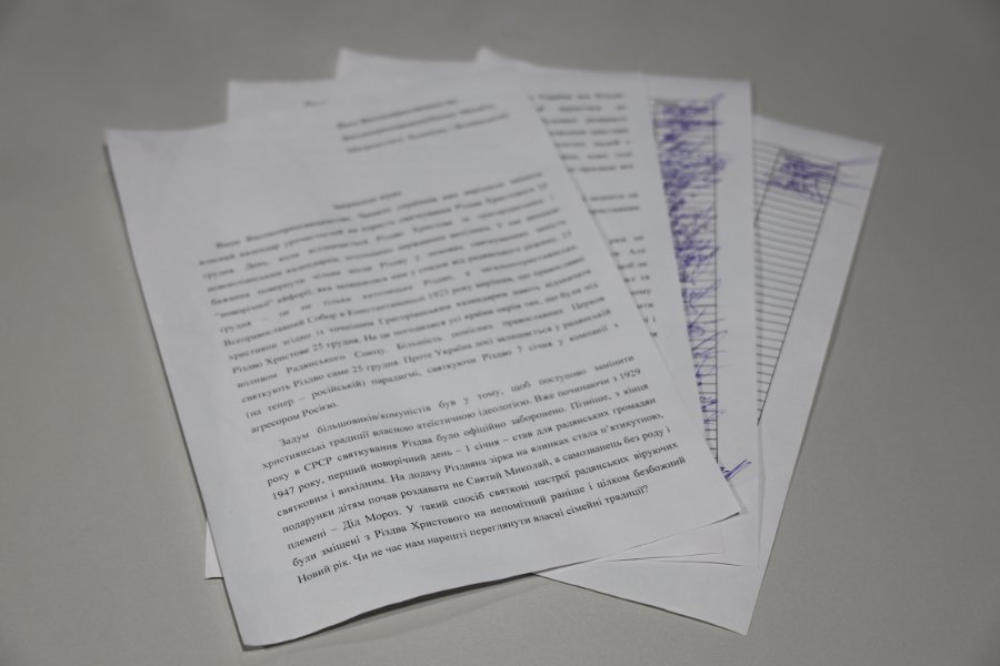 У листі-зверненні, зокрема, йде мова про те, що чимало українців вже вирішили «перенести» святкування Різдва Христового на 25 грудня, мотивуючи це бажанням повернути чільне місце Різдву у зимових святкуваннях замість «новорічної ейфорії», яка залишилася у спадок від радянського режиму.