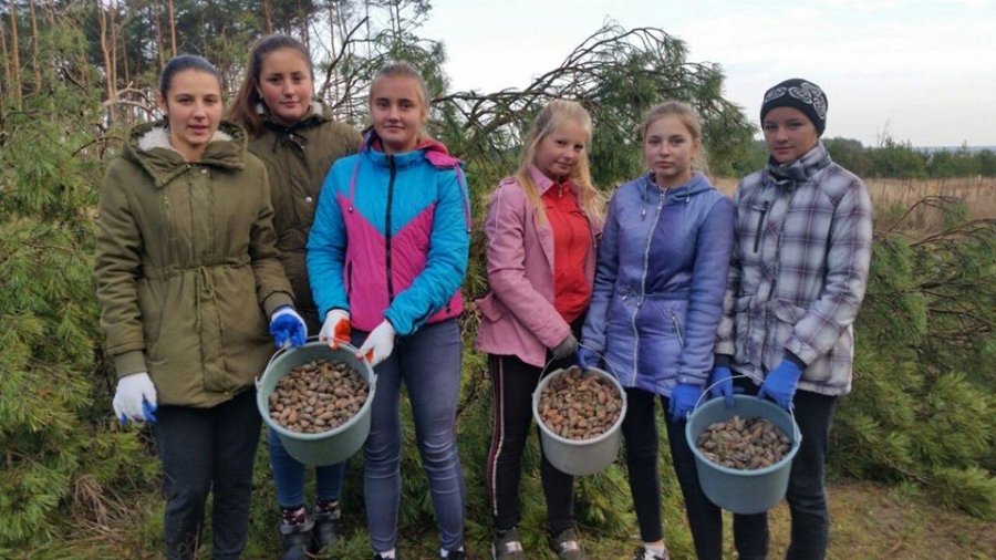 Учні Чорторийського шкільного лісництва спільно із керівником Ольгою Вейною долучилися до заготівлі шишок сосни звичайної у ДП «Поліське лісове господарство».