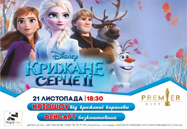 21 листопада о 18:30 в холі кінотеатру «PremierCity» відбудеться захід, присвячений прем'єрі анімаційного мультфільму "Крижане серце".