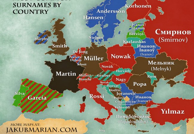 Лінгвісти також з’ясували, що найпоширеніше прізвище у Польщі – Новак, у Німеччині – Мюллер, в Італії – Россі, у Франції – Мартін, а в Англії – Сміт.