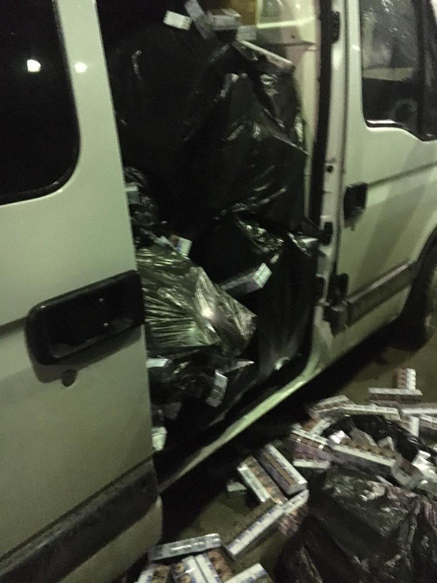 Так, під час огляду буса за подвійною перегородкою між кабіною водія та вантажним відсіком прикордонники виявили 17700 пачок сигарет, без акцизних марок.