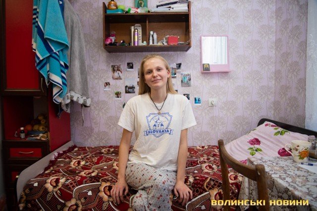 Поліна Заболотна –з міста Енергодар Запорізької області. Дещо знічено усміхається, помітивши, як округлилися від здивування наші очі, й розповідає свою історію: «Я навчаюся на журналіста. Мені дуже подобається і факультет, і гуртожиток, і загалом Луцьк. Коли поселялася в гуртожиток, то, зізнаюся, було трохи страшнувато, дуже хотілося, щоб пощастило з сусідками. І мені таки пощастило! З дівчатами живемо дуже дружно».