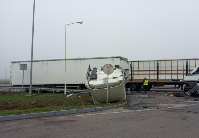 Поліцейські попередньо встановили, що водій автомобіля Renault із напівпричепом через обмежену видимість у зв’язку із туманом зіткнувся із вантажівкою DAF, припаркованою на узбіччі.