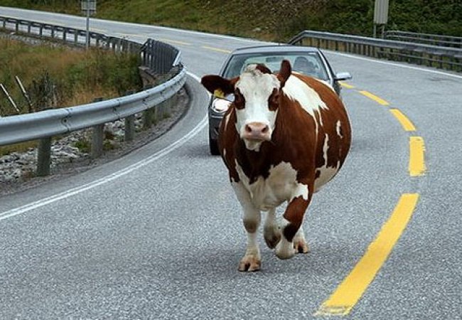 Що за фігня. Водій на дорозі збив корову, якій не місце на дорозі і платить за це штраф. Чи як?