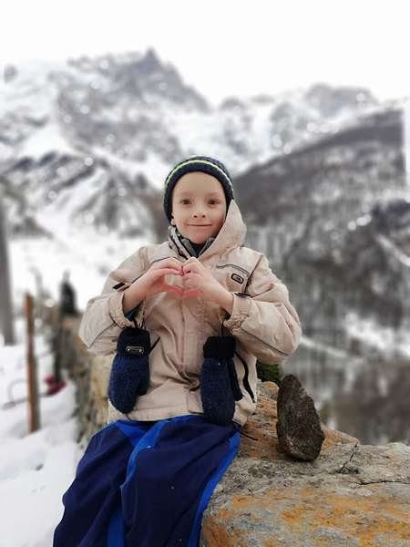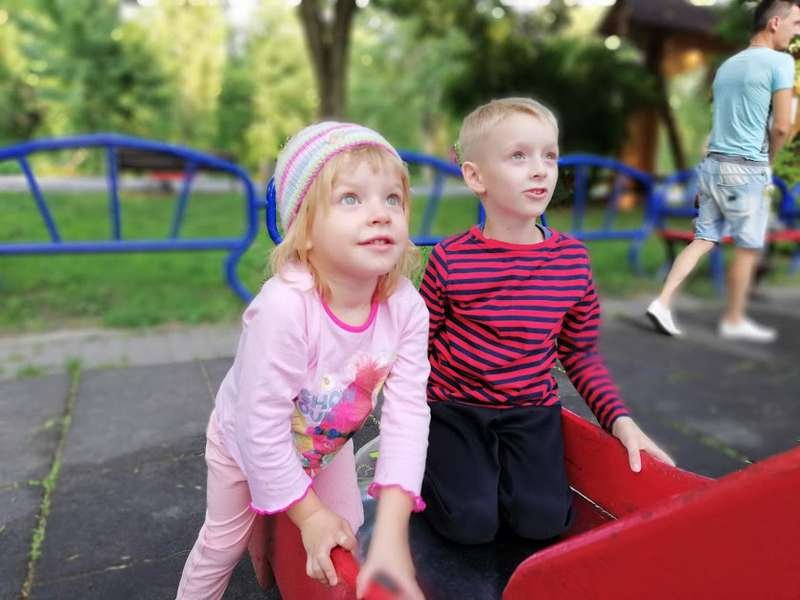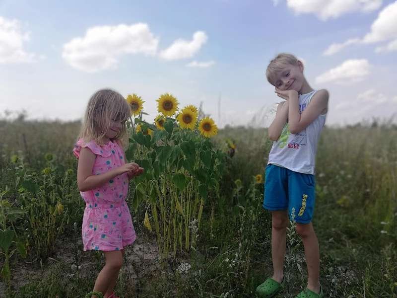Злата гарно позує, коли фотографую. Тато Олександр тішиться, пригортає дівчинку до себе і називає її моделлю. Модель користується татовою увагою, по-дитячому маніпулює, просить піцу. Михайлик – чемний і мовчазний. Соромиться. Фотографуватися не хоче, лізе під стіл і по-змовницьки там посміхається. Вдається зловити кілька кадрів, коли він розмовляє з батьком. А от сестричка називає його вередливим.