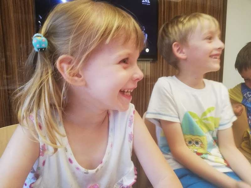 Злата – енергійна і дуже допитлива дівчинка. П’є сік у кафе і розглядає світлини у татовому телефоні. Знайома зі мною якихось три хвилини і досить сміливо показує мені, куди вона подорожувала. Тицяє маленьким пальчиком в екран телефона і питає:
