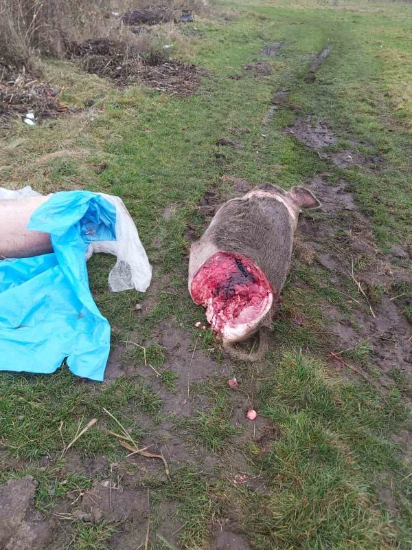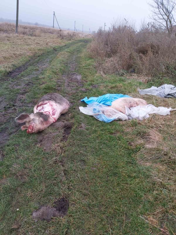 За словами людей, декілька мертвих свиней вони побачили на несанкціонованому сміттєзвалищі. Деякі із тіл розірвані та закривавлені.