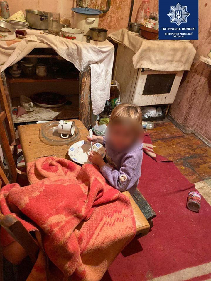 Втім, вразило патрульних не кількість битих тарілок та з'ясовування стосунків, а те, що серед усього цього безладу, в брудному приміщенні, без необхідних меблів, холодильника, з санвузлом у жахливому стані перебувають двоє малолітніх дітей - дівчатка 5-ти та півтора років. Діти були брудні, занедбані та голодні. Для сну у них було одне ліжко на двох з брудною білизною.