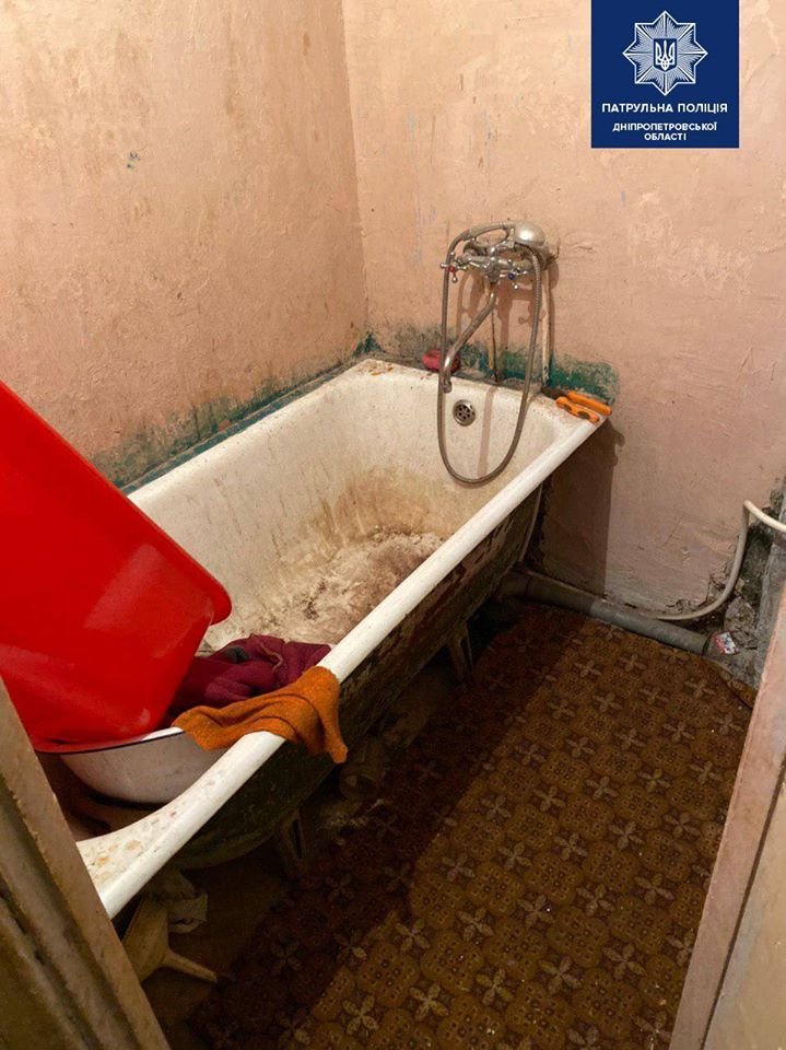 У Дніпропетровської області в квартирі майже без меблів, холодильника, працюючого санвузла, з брудною ваною, в якій оселилися черв'яки проживали діти.