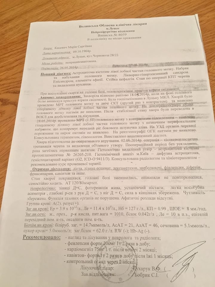 Лучанин Тарас Кацевич просить усіх небайдужих волинян допомогти коштами на дороговартісне лікування його матері, яка бореться з пухлиною головного мозку вже 5 років.