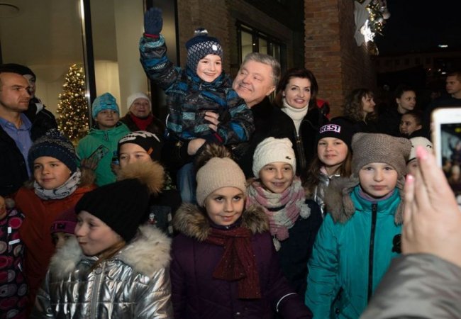 Петро і Марина Порошенко побували на церемонії офіційного відкриття новорічної ялинки та поспілкувались із дітьми на новенькій ковзанці, яка вже зустріла перших відвідувачів. Разом із киянами на ялинку завітали діти з Краматорського Центру соціально-психологічної реабілітації.