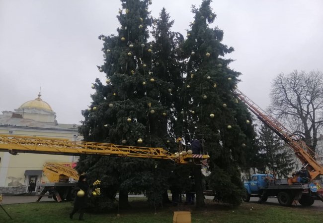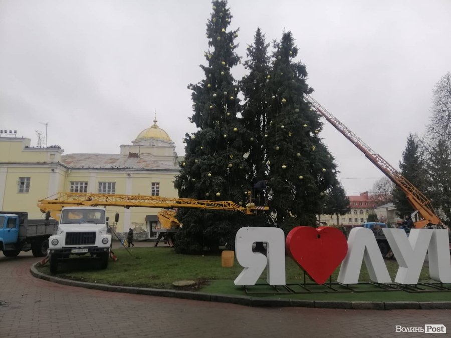 У центрі Луцька почали прикрашати головні ялинки: якими вони будуть цьогоріч