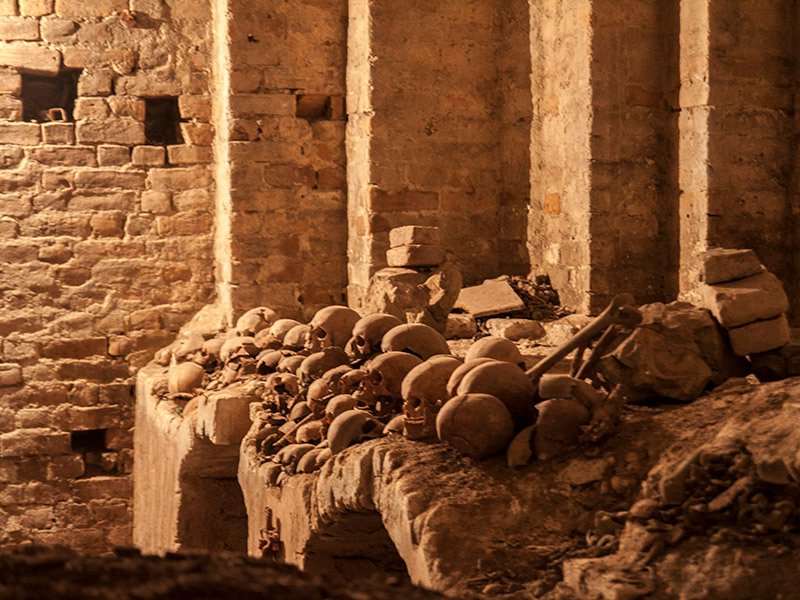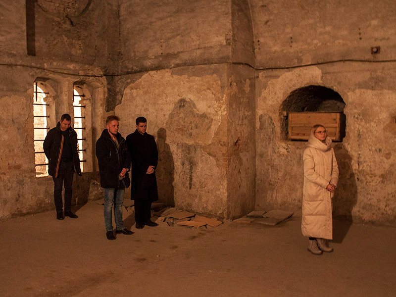 Довідка. Збудований у 1616–1646 рр. за проєктом італійського архітектора Джакомо Бріано єзуїтський костел Святих Апостолів Петра і Павла має величезні підземелля. За свою 400-літню історію храм пережив чимало лихих часів, проте найгіршими для нього були роки радянської влади. У січні 1945 р. були ув’язнені останній передвоєнний луцький єпископ Адольф-Петро Шельонжек та настоятель кафедрального собору, ксьондз Владислав Буковинський, а в 1946 р. атеїстичний режим повністю відібрав храм у католиків. Із тих пір костельні приміщення використовували не за призначенням. Тут були різні установи, контори, а в 1980 р. у костелі влаштували обласний музей атеїзму. У підземеллях були склади, де зберігали, зокрема, овочі, проте про стан самих приміщень ніхто не дбав.