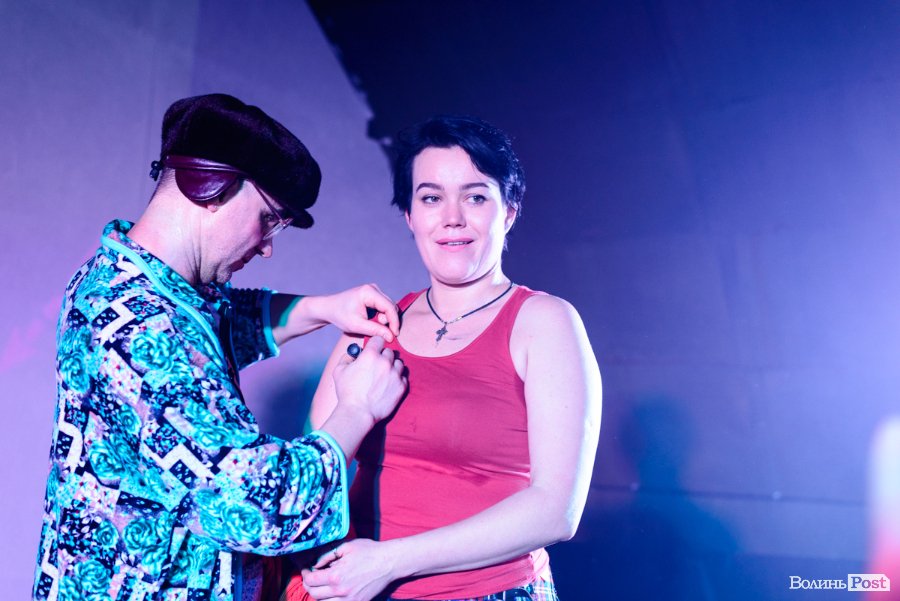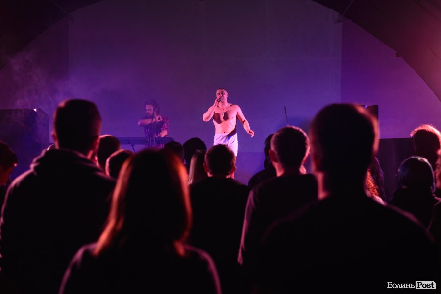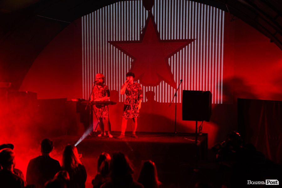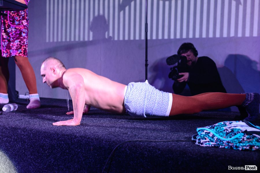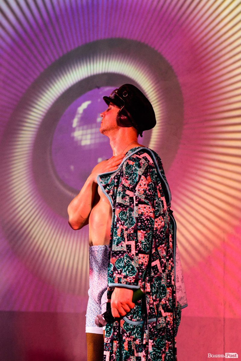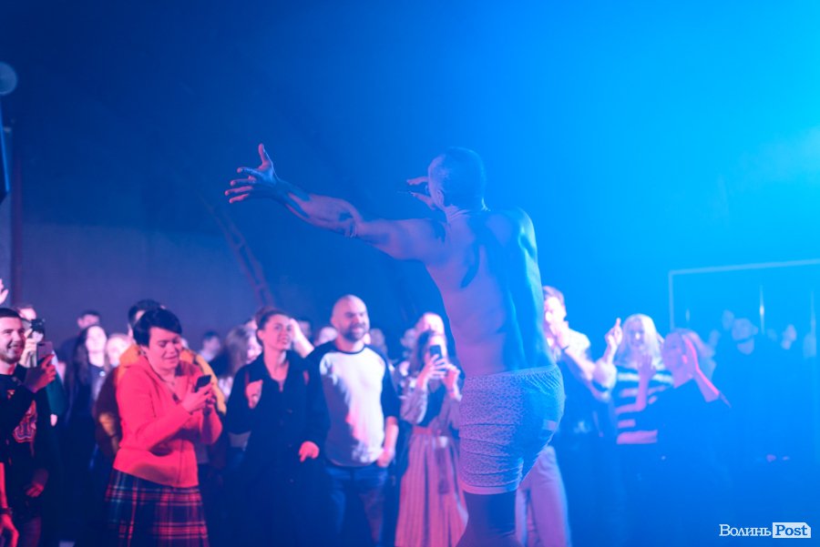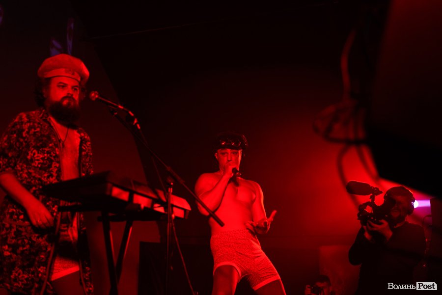 Зазвичай їхні костюми – у стилі мінімалізм, щось на кшталт однієї шкарпетки на чоловічих принадах або ж картини на силіконових шлейках від бюстгальтерів, що прикривають тіло тільки частково, однак, певно, організатори концерту в Луцьку попередили артистів, що у «Ангар-stage» поки – холодно, тож варто обрати щось більш тепле. Вони й обрали.
