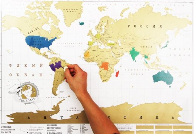 Доступність мережі Інтернет та відкриті кордони дали зрозуміти нашим людям, що у світі є дуже багато цікавих для відвідування місць. Сьогодні навіть звичайна людина середнього достатку вже не сумнівається у можливості якісного та не надто дорогого відпочинку за кордоном, але є й такі, для кого мандрівки та знайомство з іншими країнами перетворилось у стиль життя. Якщо у вашому оточенні є така людина, то найпрекраснішим подарунком до зимових свят для неї буде велика і красива скетч-карта світу (scratch map).