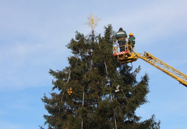 У Нововолинську 17-го грудня оздоблювали головну ялинки міста до свят.