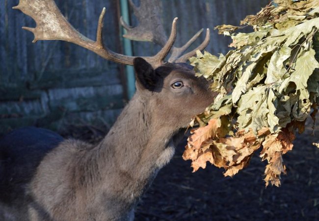 Волинське обласне управління лісового та мисливського господарства передало тонну сіна та майже тисячу підсолених кормових віників для мешканців Луцького зоопарку.