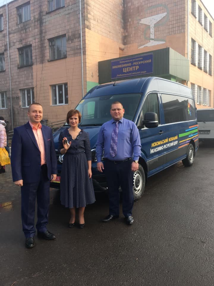 З нагоди подвійного свята голова Любомльської міської ради Роман Ющук вручив директору ІРЦ Валентині Богдан ключі від новенького спеціалізованого автомобілю. Спецтранспорт обслуговуватиме дітей з особливими освітніми потребами. Цей автомобіль зможе служити справжнім мобільним переїзним кабінетом.