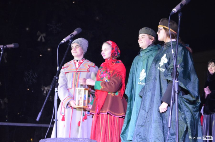 Під час святкових урочистостей вже традиційно представники організації "Пласт" передали лучанам Вифлеємський вогонь, полум’я миру.