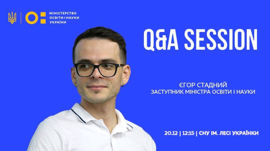 Що обіцяють: 20 грудня о 12:15 відбудеться зустріч заступника Міністра освіти і науки Єгора Стадного із викладачами ЗВО м. Луцьк.