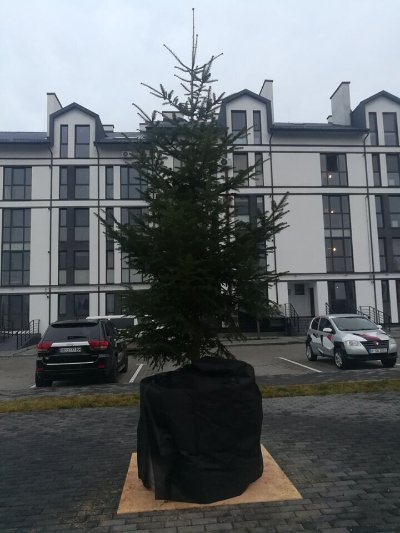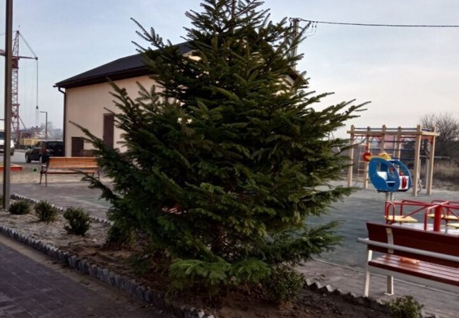 Такою акцією забудовник вирішив показати приклад іншим: використовувати живі незрізані ялинки, - пише "Перший".