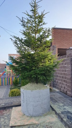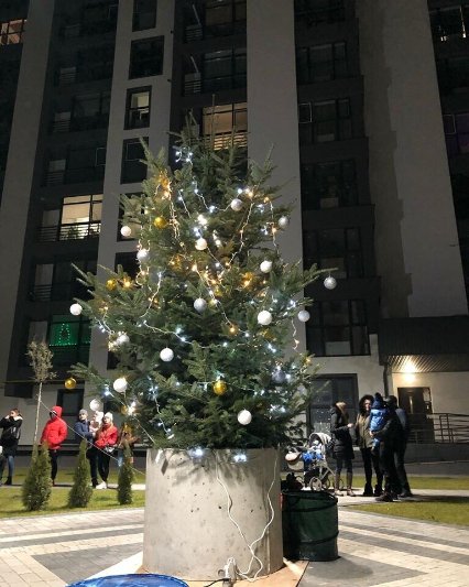 У житлових комплексах «Інвестора» встановили живі ялинки у горщиках. ФОТО*