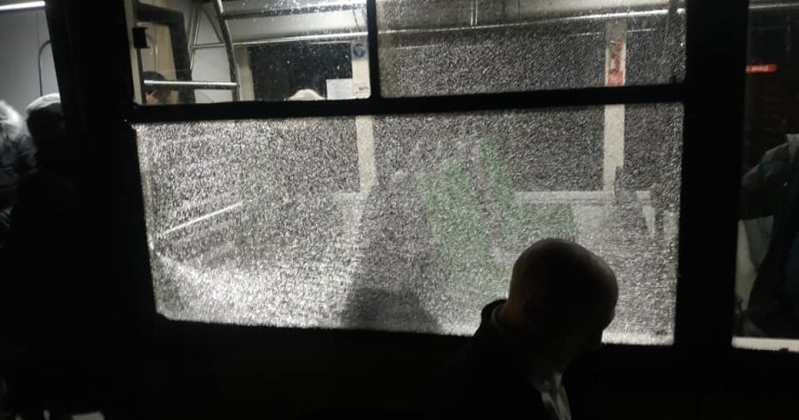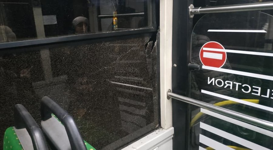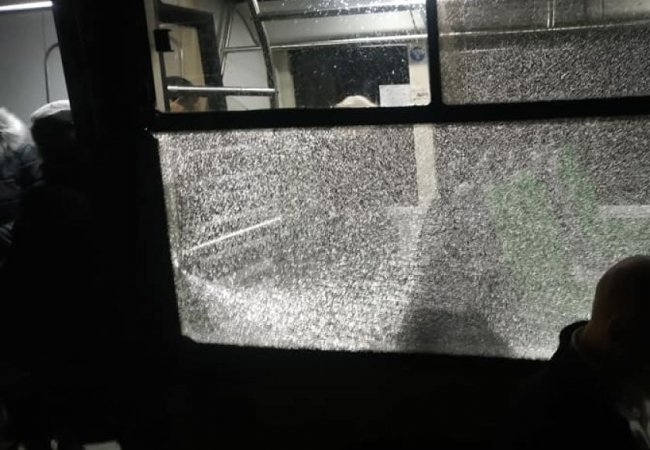 У результаті - пробите вікно автобуса, постраждалих немає.